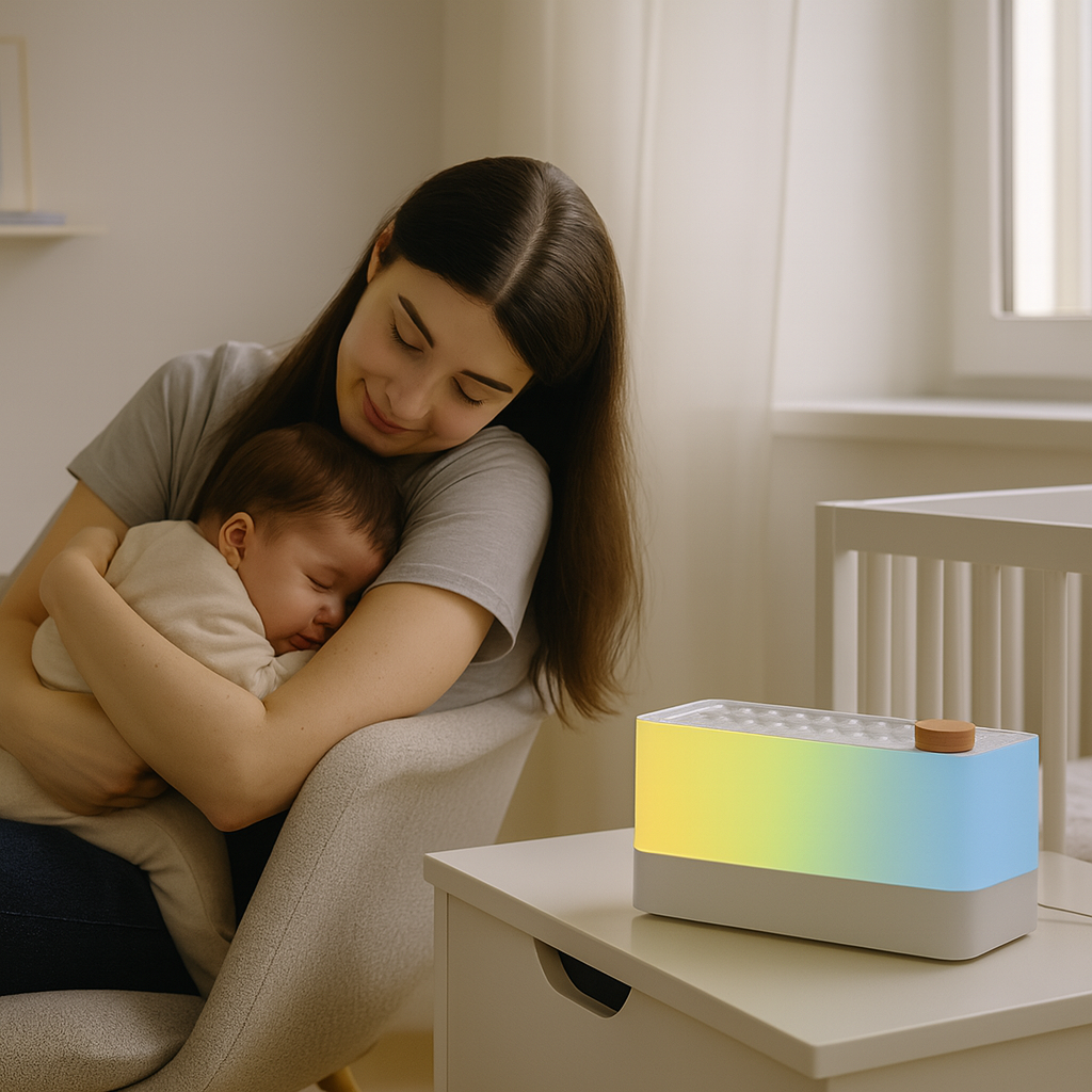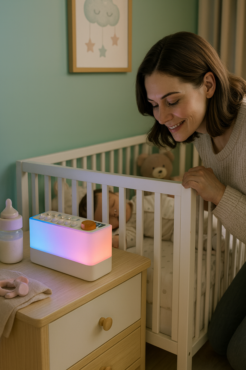 A gentle sound, a soothing atmosphere… and your baby falls asleep peacefully.